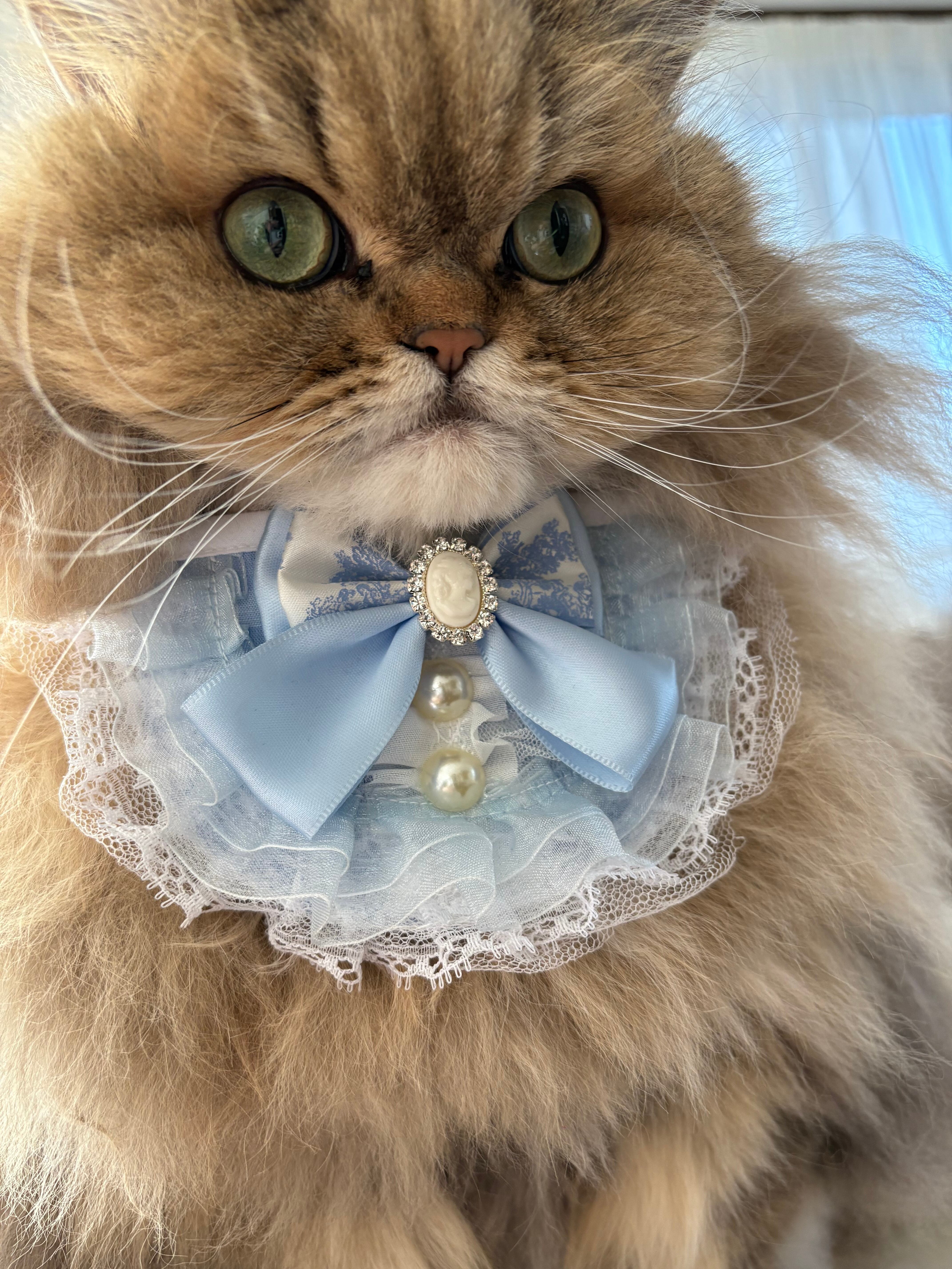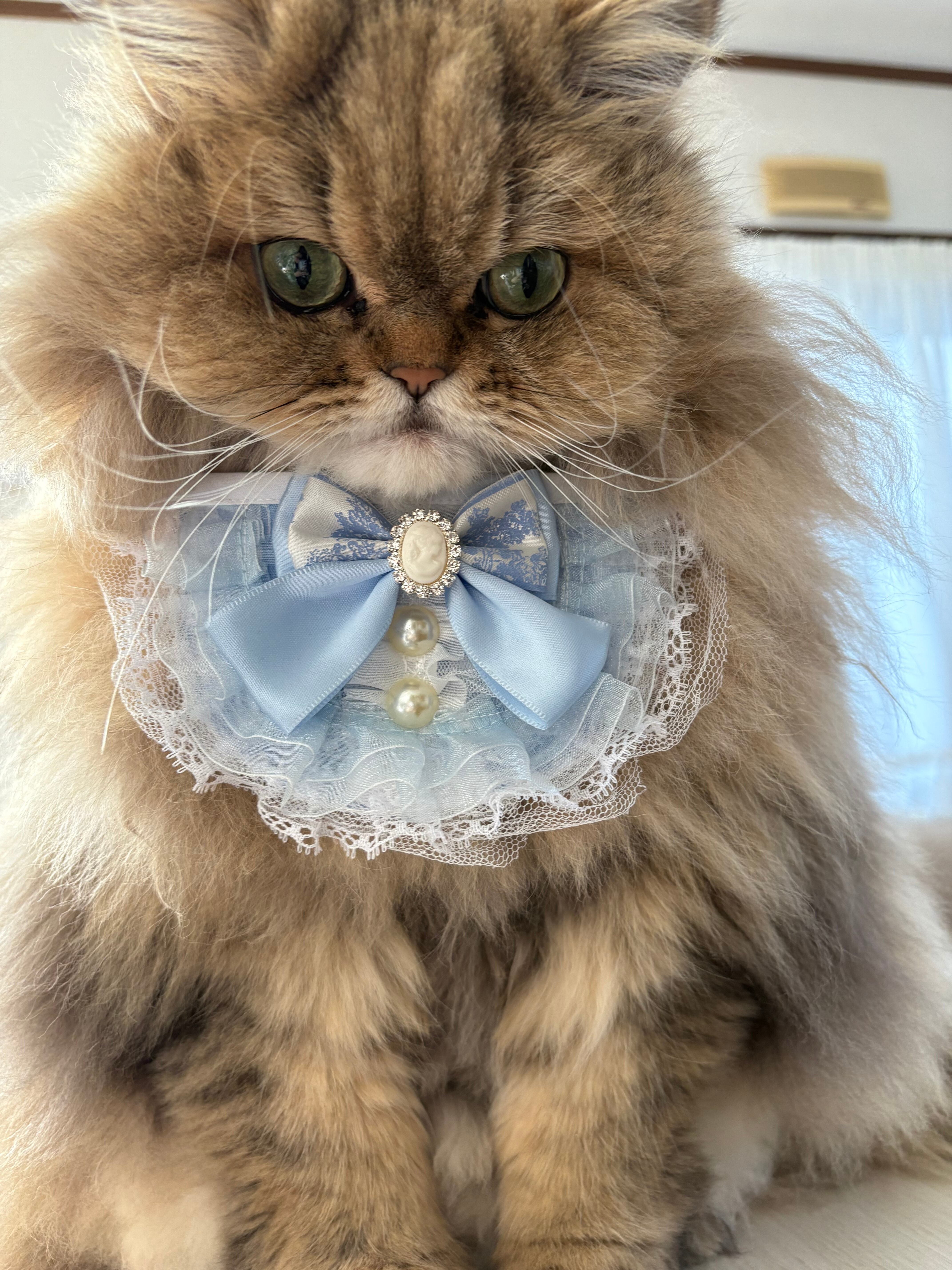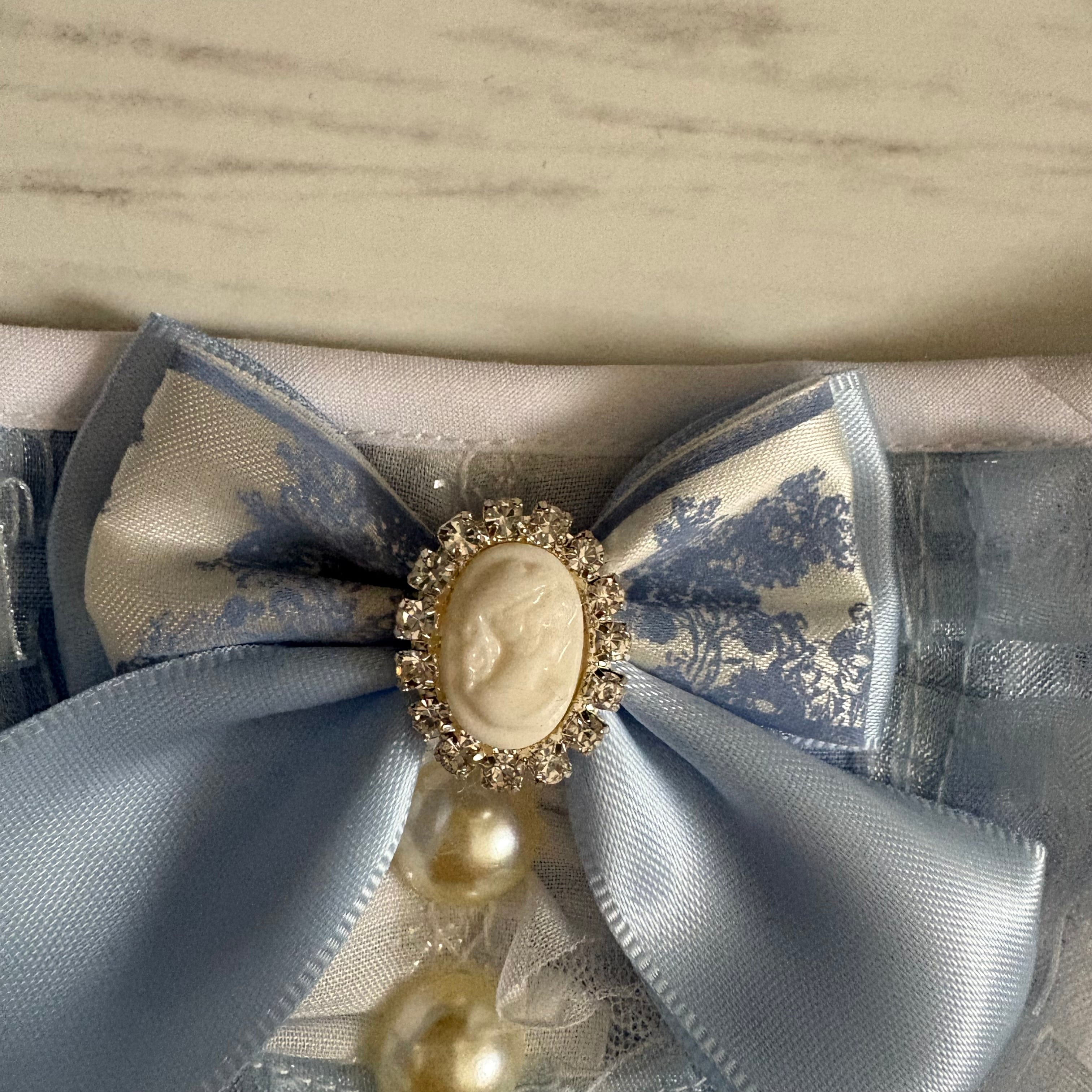カメオがオシャレで水色と白の品のある組み合わせです✨️